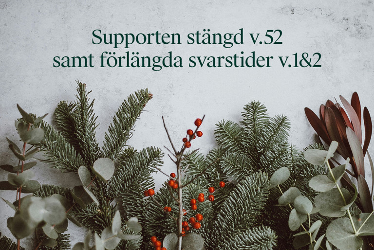 Under jul- och nyårshelgerna har supporten stängt under vecka 52 och har förlängda svarstider under vecka 1 och 2.