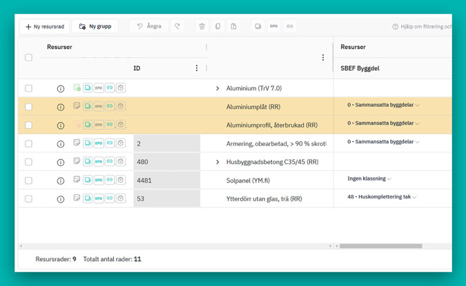 Oavsett licenstyp kan du exportera obegränsat antal klimatdeklarationer och rapporter. Via verktyget får du också tillgång till ett brett urval av miljödata genom EPD:er och databaser från Boverket, Trafikverket och YM.fi.